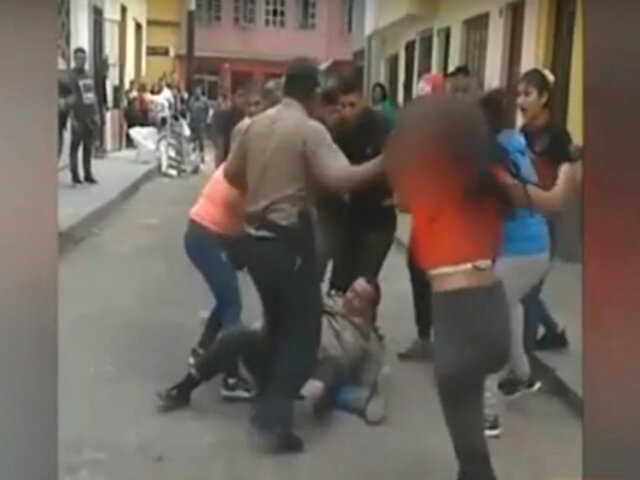 Dos agentes de la Policía Nacional del Perú fueron agredidos por los familiares de un sujeto al que estaban interviniendo en la cuadra 01 del jirón Catacaos, en el distrito del Rímac. Tras la golpiza, el hombre que debía ser detenido logró escapar.
