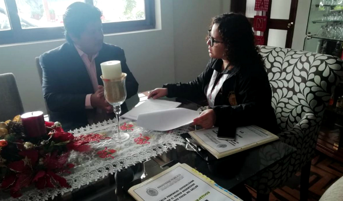 Luego fue llevado a su domicilio donde ingresó con los agentes de la Policía. Todo indicaría que se vendría realizando un allanamiento, pues se vienen revisando documentos, interrogación y testimonios para recabar información.