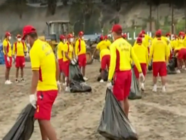 Un batallón de la Unidad de Salvataje de la Policía Nacional del Perú (PNP) llegó hasta el balneario para realizar el recojo de las grandes cantidades de desperdicios que se encontraban regadas en toda la playa limeña.