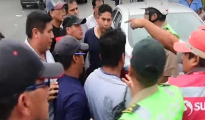 En San Luis, una gresca callejera fue la que armaron transportistas informales de Yerbateros cuando agentes fiscalizadores los intervinieron por operar en la ilegalidad. Los agentes detuvieron a combis y colectivos piratas que transitaban por la vía a gran velocidad generando caos e inseguridad, sin embargo, cuando estaban removiendo la placa de un vehículo una turba rabiosa se les vino encima.
