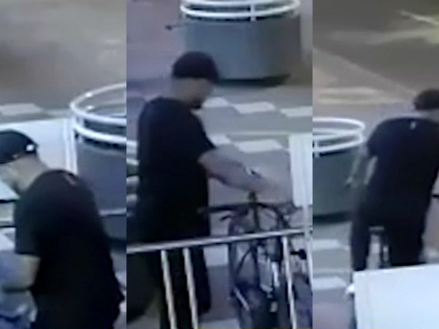 Cámaras de seguridad captaron al sujeto cortando la cadena de seguridad y llevándose la bicicleta. Al sujeto solo le tomó poco más de 10 segundos para para concretar el robo.