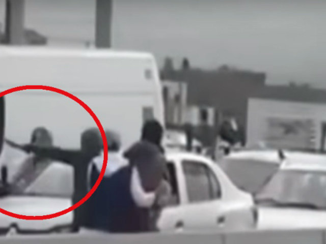 Como se observan en imágenes grabadas por un transeúnte, tres hombres acorralan a otro sujeto en medio de la separación de la pista y uno de ellos empieza a apuñalarlo con un cuchillo de cocina.