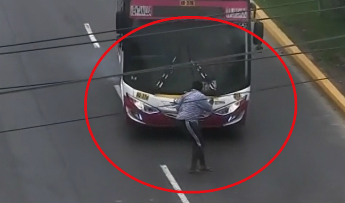 Una cámara de seguridad captó el brutal atropello. El bus de transportes impactó a la mujer cuando buscaba pasajeros para llevarlos hasta un paradero.