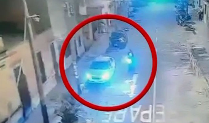 La mujer baja e intenta huir. Ese es el momento en que es atacada por otro de los ocupantes del auto, quien se retira a bordo de la motocicleta mientras la joven escapa herida. El vehículo también huye raudamente.