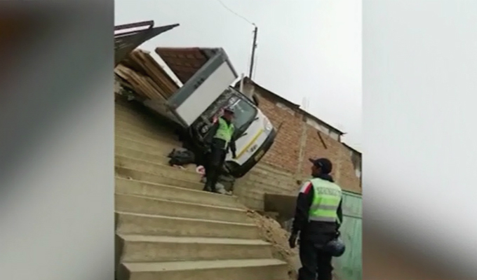 Según contaron los vecinos, el conductor identificado como Giordi Ponciano Nación quiso colocar piedras debajo de las llantas del vehículo pesado de placa de rodaje C6B-831 para poder estabilizarlo.