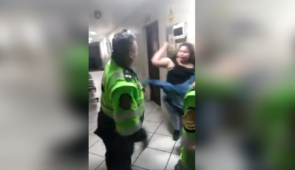 Imágenes captadas dentro de la sede policial muestra cómo la mujer de 29 años discute con un agente, le reclama a gritos e incluso agrede al efectivo, quien respondió el ataque también a golpes.