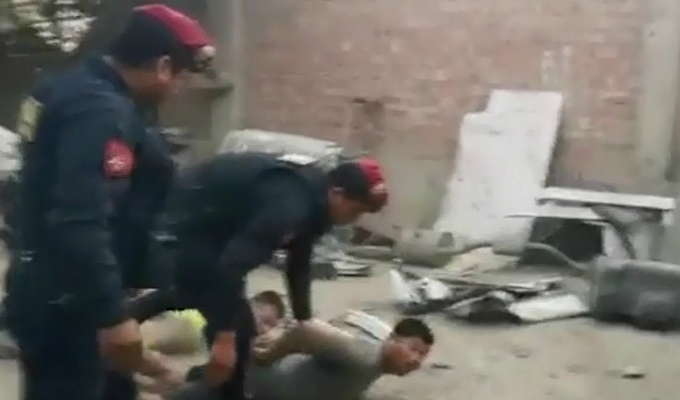 Los detenidos fueron identificados como Jonathan Torres Cárdenas y Josue Lima Pillaca. Ellos fueron intervenidos cuando descargaban costosas autopartes de vehículos robados en el que sería su centro de operaciones.