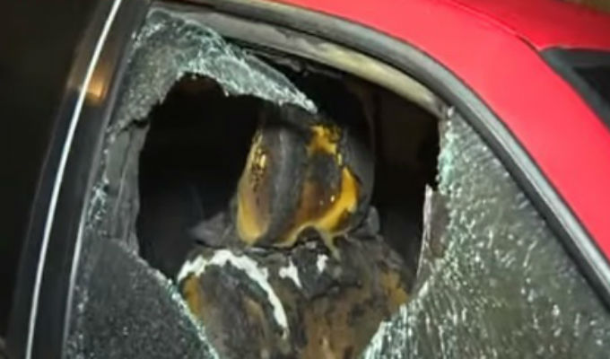 El vehículo pertenece a una abogada que, atemorizada, evitó identificarse, pero contó que cuando descansaba oyó un estruendo y, al salir a ver por la ventana, pudo divisar a un sujeto con capucha blanca y gorro que se alejaba corriendo, el cual abordó un auto que lo esperaba para fugar.