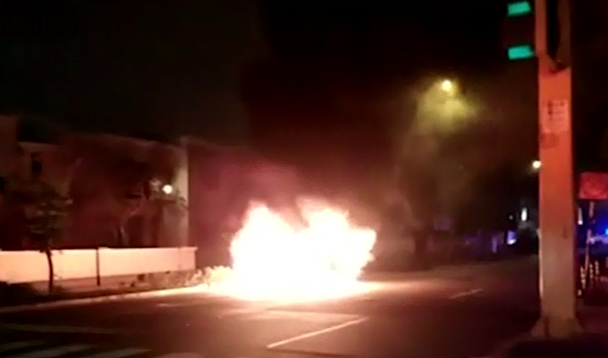 El vehículo terminó envuelto en llamas cuando los ocupantes se encontraban esperando el cambio de la luz del semáforo.