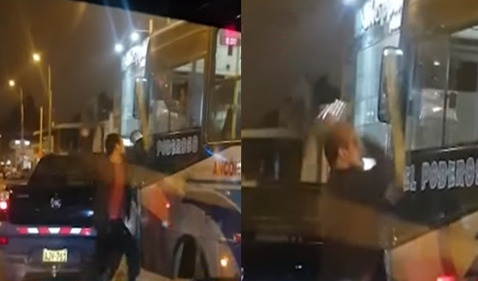 Esta madrugada un hombre destrozó la ventana del conductor de bus de transporte público. Este violento acto se reportó en el distrito de Surco, y todo habría iniciado cuando cuadras atrás el chofer de bus le habría cerrado el paso.