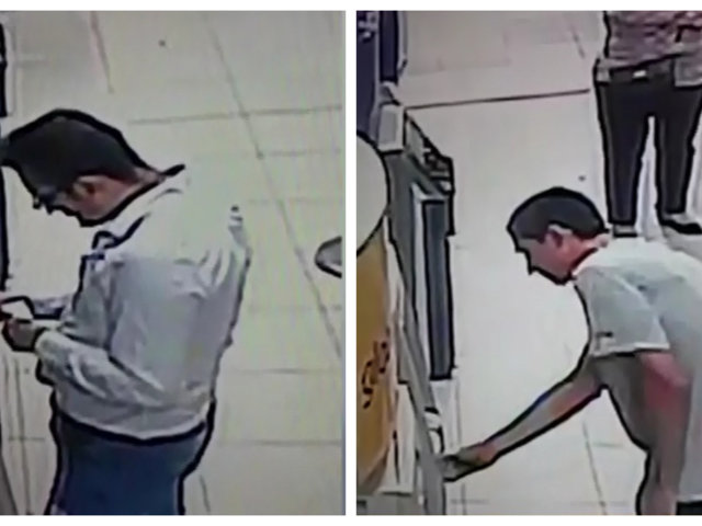 Cámaras de seguridad captaron el preciso momento en que el sujeto finge hablar por celular para acercarse hasta el dispensador de dinero. El hombre actúa junto a su cómplice que actúa de campana en el cajero de al lado.