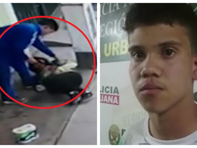Se trata de Christian Torres Garay, de 18 años, quien disparó a quemarropa por la espalda a Rosa Vilca, de 34 años. El sujeto le apunta con el arma en la pierna mientras que la víctima se cae al piso y se cubre el rostro.