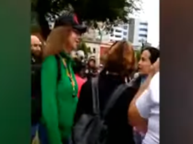 Afuera de la iglesia Virgen Milagrosa, evitaban que un grupo de activistas feministas se acerquen a hacer manifestaciones. Comenta que todo se originó a raíz de un comentario que hizo sobre Cava, en que la llamó “hombre”. Asimismo, reclamó que la policía en el lugar no la ayudó.