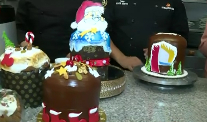 Los panetones se personalizan desde una panadería del Rímac y puede encontrarlos desde los 25 soles. Elvis Mayta, maestro panetonero hizo una demostración de la decoración de un panetón con el logotipo de nuestra casa televisora.