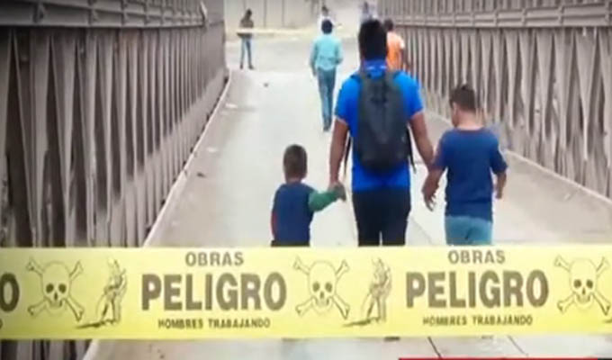 El puente modular tipo bailey que se ubica sobre el río Huaycoloro en el distrito de Lurigancho-Chosica se desmorona. Este lunes se informó de las graves deficiencias que presenta esta estructura y cuya caída sería fatal para los vecinos de la zona.