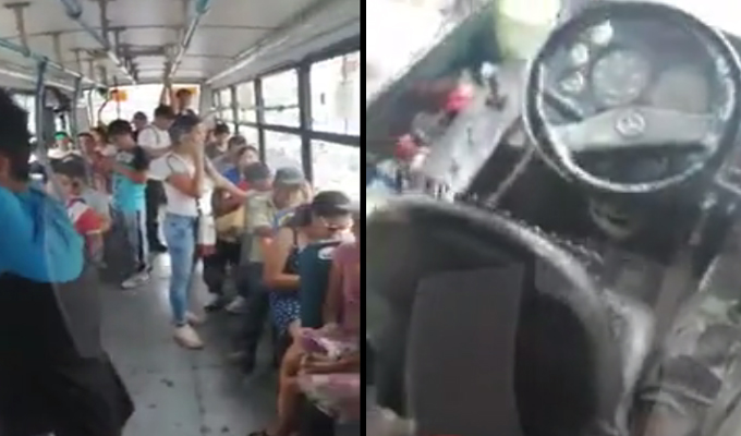 Las imágenes muestran al vehículo lleno de pasajeros consternados por el suceso y se oyen las quejas de los usuarios. En tanto, gran caos se percibe a los alrededores, se presume además que el hombre habría dejado el bus mal estacionado.