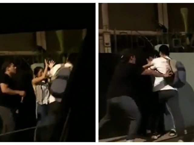 Un vecino que se encontraba a bordo de un auto grabó el preciso instante en que ocurre la agresión. La mujer le propina una cachetada y eso desata la furia del hombre que le propina una serie de puñetes en el estómago.