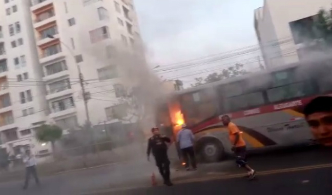 Momentos de tensión se vivieron a la altura de la cuadra 14 de la avenida Brasil en Pueblo Libre, luego que un bus de transporte público de la empresa Urano Tours ardiera en llamas.