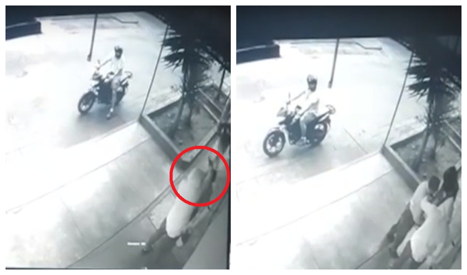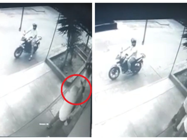 Como se observa en imágenes, dos sujetos interceptan al hombre mientras su cómplice los espera en una moto lineal. Uno de ellos golpea a la víctima con la cacha del arma por resistirse al robo de sus pertenencias.