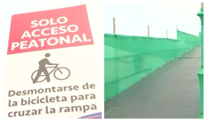 Ante ello, la comuna ha prohibido a los ciclistas subir montado en bicicleta para cruzar la rampa. Ellos han colocado un cartel donde especifican que para cruzar por la estructura es necesario desmontarse de sus vehículos.