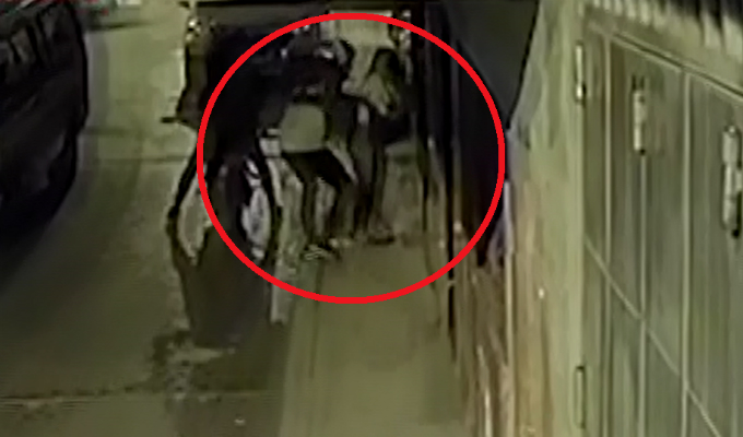 Cámaras de seguridad captaron el preciso momento en que ocurrió el hecho y dan cuenta que la joven buscaba sus llaves para poder ingresar a su vivienda cuando fue interceptada por los delincuentes en moto.