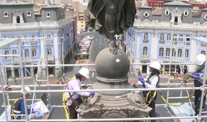 Serán un total de 100 monumentos los que serán restaurados en el Centro histórico de Lima durante los próximos meses, entre ellas comprenden las esculturas de Bolognesi, Jorge Chávez y Ramón Castilla en la Plaza Unión.