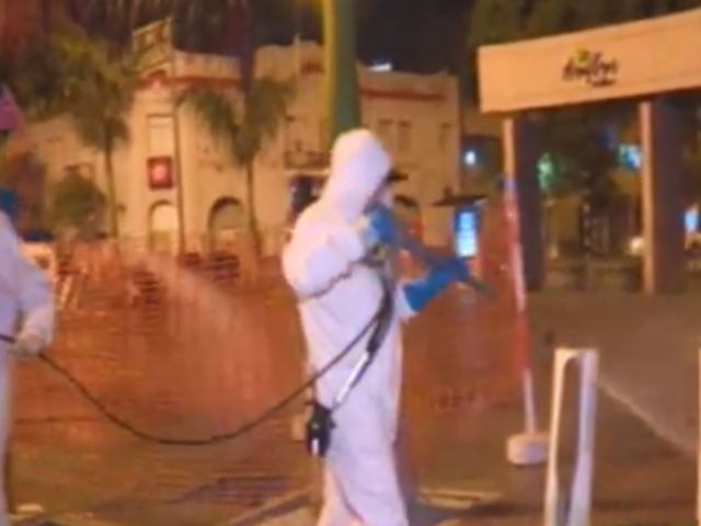 Esta vez los bomberos salieron a las calles para desinfectar las vías de Miraflores. La avenida Larco fue la primera en la lista. La labor se inició desde tempranas horas de la noche. Portando los equipos correspondientes, rociaron activos químicos mezclados con agua en parques y veredas.