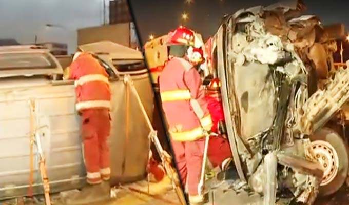 En el distrito de Independencia, en el puente de la Panamericana Norte, a la altura de la avenida Carlos Izaguirre, una camioneta tipo minivan se estrelló contra la berma central del bypass. Miembros de los bomberos y la Policía Nacional llegaron al lugar del accidente.
