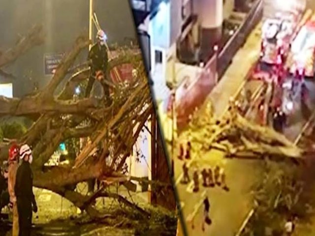 Esta madrugada, un árbol de gran tamaño cayó sobre la vía de la cuadra 25 de la avenida Arequipa en el distrito de San Isidro. El gran tronco terminó impactando contra las instalaciones de un instituto y en su desplome se llevó los cables de luz eléctrica.