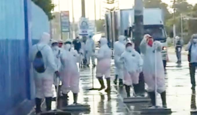 Esta mañana Daniel Malpartida, alcalde de Bellavista, supervisó la desinfección de los alrededores del Hospital Alberto Sabogal en el Callao. Los trabajadores que participaron en la limpieza contaron con equipos de protección personal, como guantes, lentes de seguridad, mascarilla o tapaboca, calzado apropiado y uniformes para protegerse.
