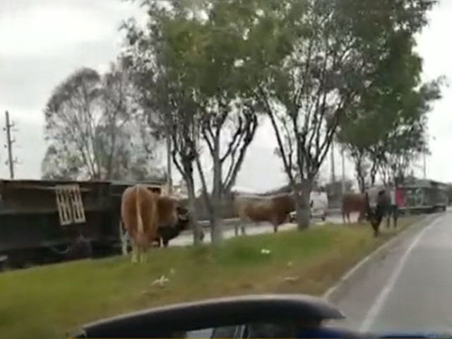 Cinco toros murieron, los otros 22 animales fueron subidos a otros vehículos y llevados a su lugar de destino.
