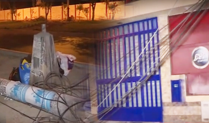 En el distrito de San Martín de Porres, a la altura de la cuadra 22 de la avenida Angélica Gamarra, una grúa derribo tres postes de telefonía y alumbrado público. Algunos cables de luz quedaron expuesto y los de telefonía regados en toda la vía.