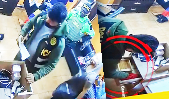 La diligencia siguió su curso, pero uno de los agentes policiales abrió una caja, revisó el cajón donde el dueño guarda el dinero y retiró 100 soles que luego lo guardó en su bolsillo.