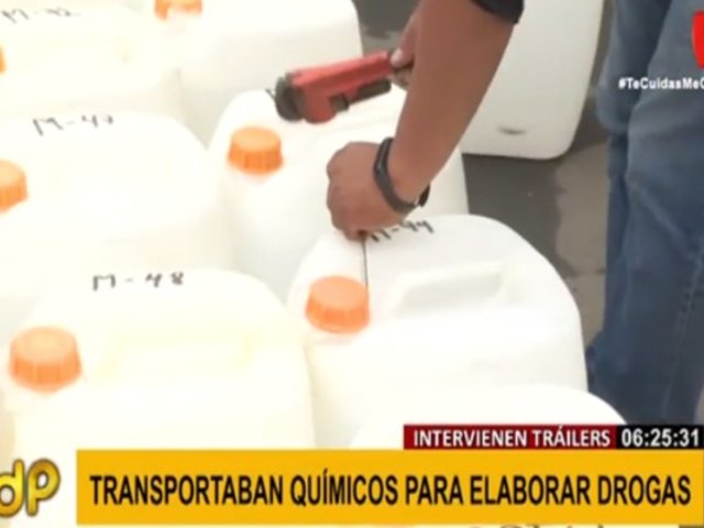 Efectivos de la Dirandro intervinieron dos vehículos de carga que intentaban trasladar insumos químicos para elaborar clorhidrato de cocaína en Matucana y Pucusana. El operativo se realizó en conjunto con la Tercera Fiscalía de Crimen Organizado.