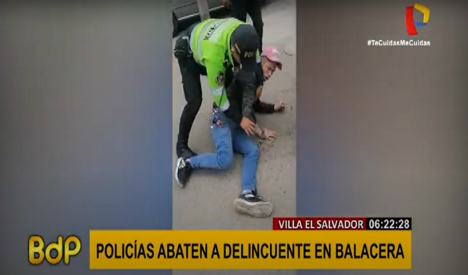 La Policía abatió a un presunto delincuente que intentaba huir. Según testigos, el sujeto sería un ciudadano venezolano que junto a su cómplice habían cometido un robo y luego intentaron huir a bordo de un mototaxi, pero durante la persecución una bala de la Policía impactó en la cabeza de uno de los maleantes.