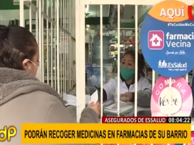 Essalud ha incluido a más de 200 mil asegurados al novedoso sistema de recojo de medicamentos 'Farmacia vecina', que agrupa a cientos de locales que se encuentren cerca a la vivienda de los asegurados. De esta manera, ellos pueden acceder a sus medicinas sin exponerse a la COVID-19.