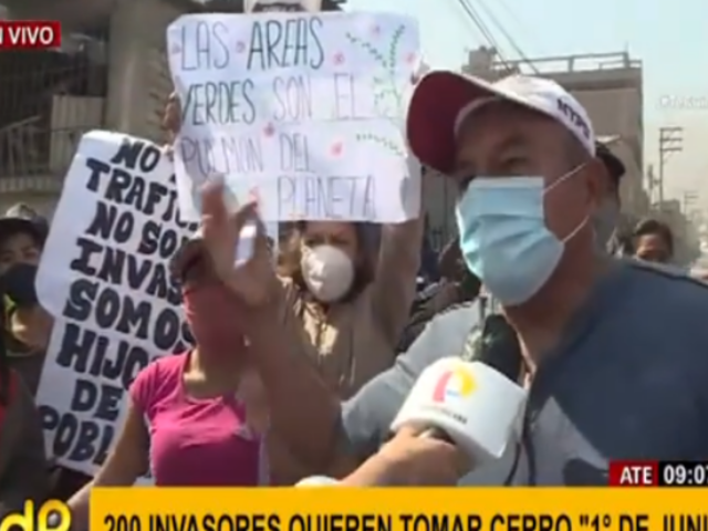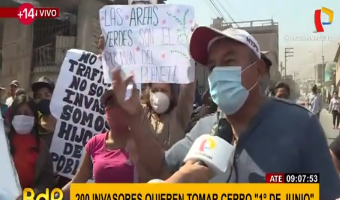 Disturbios. Unas 200 personas del asentamiento humano Horacio Zevallos, en Ate, intentan invadir el cerro 1 de junio, ante la oposición de los vecinos de la zona, quienes señalan que este espacio ha sido declarado como un área verde por la Municipalidad de Lima.