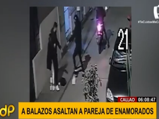 Cada vez más salvajes. Cámaras de seguridad registraron cómo 'raqueteros' en moto persiguieron y asaltaron a una pareja de enamorados en una calle del Callao. Ante el pánico de la joven, realizaron disparos al aire para conseguir robarle su cartera. Similar situación se vivió en Independencia y Los Olivos.
