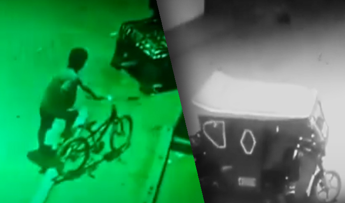 En el distrito de Los Olivos, un sujeto aprovechó la oscuridad de una calle para robar una mototaxi. El ladrón apareció en una bicicleta, sacó algunos cajones de la parte posterior del vehículo y luego colocó su bicicleta en la unidad.