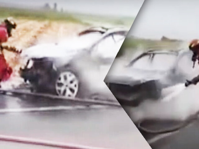 Segundos después, las llamas se apoderaron del vehículo por lo que abandonaron la zona ante el temor de una explosión.