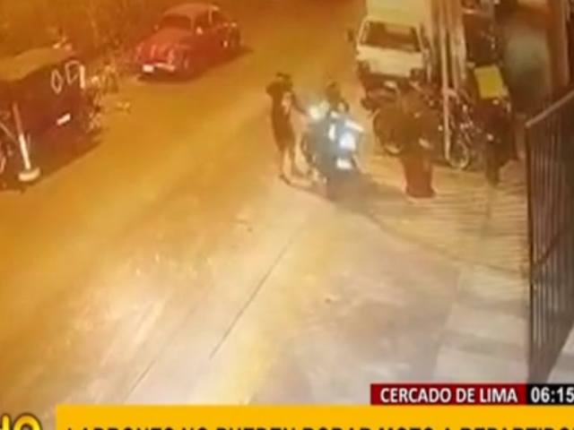 Dos delincuentes armados fracasaron al intentar robarle una moto a un repartidor, pues no pudieron hacerla arrancar. El hecho ocurrió en la puerta de un condominio en Cercado de Lima. Vecinos pidieron mayor seguridad ante los constantes asaltos.