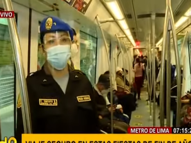El plan Navidad 2020 dio inicio en el Metro de Lima. Tras el incremento del aforo en los vagones de la Línea 1, se reforzará el control y las medidas de bioseguridad, como el uso de la mascarilla y protector, con la participación de la policía ferroviaria.