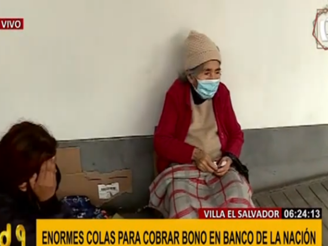 Malestar. Una multitud de personas, entre niños y ancianos, pernoctaron en los alrededores de la agencia del Banco de la Nación en Villa El Salvador para cobrar el Bono Familiar Universal de 760 soles por parte del Gobierno. En declaraciones a Buenos Días Perú, se quejaron de la mala organización y de la presencia de revendedores en el lugar.