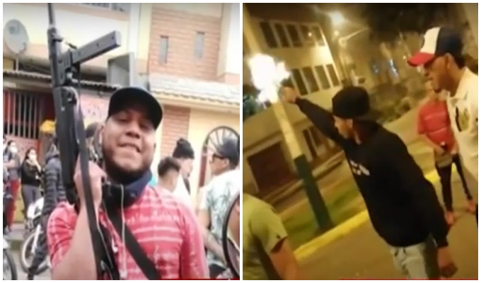 Como se observa en las imágenes, no usan sus mascarillas y con pistolas en manos realizan disparos al aire. Fueron los amigos de estos sujetos quienes difundieron videos y fotografías en los que se les ve incluso con metralletas.