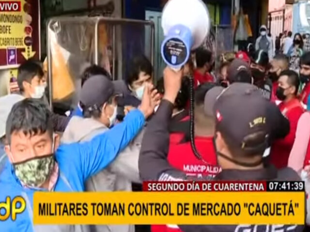 Personal de la comuna tuvo una acalorada discusión con los vendedores que se encuentran en contra del aforo permitido. Asimismo, efectivos de las Fuerzas Armadas se encuentran resguardando el mercado para evitar la aglomeración.