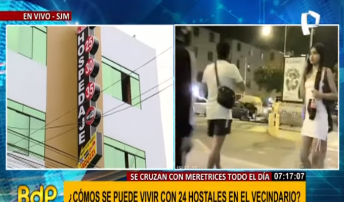 Fuera de control. Los vecinos de la urbanización Entel, en San Juan de Miraflores, estarían siendo amenazados por mafias de trata de mujeres, ante la explosión de hostales registrada en esta zona residencial del distrito.