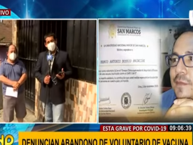 Marco Antonio Bossio permanece en la Villa Mongrut, donde tras hacerse público este caso ha podido conseguir una cama con oxígeno. Pero ahora el padre, Luis Bossio, quien también participó como voluntario, pide que se revele qué se le inoculó.