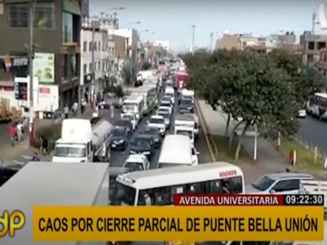 Gran congestión vehicular se registra en por segundo día consecutivo en la avenida Universitaria en el distrito de San Martín de Porres, debido al cierre temporal del puente Bella Unión.