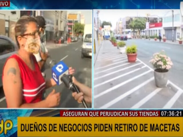 Un equipo de Buenos Días Perú llegó hasta el lugar y corroboró que las macetas de gran tamaño se encuentran en los espacios para estacionar en diversos negocios como pasterías y hasta hoteles.
