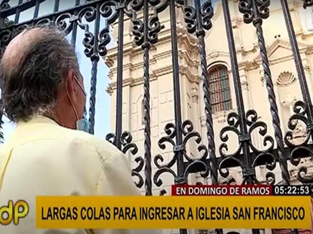 En la iglesia San Francisco se registraron largas colas de fieles que llegaban para asistir a misa por Domingo de Ramos. Desde las 5 de la mañana se registró asistencia de fieles y devotos.